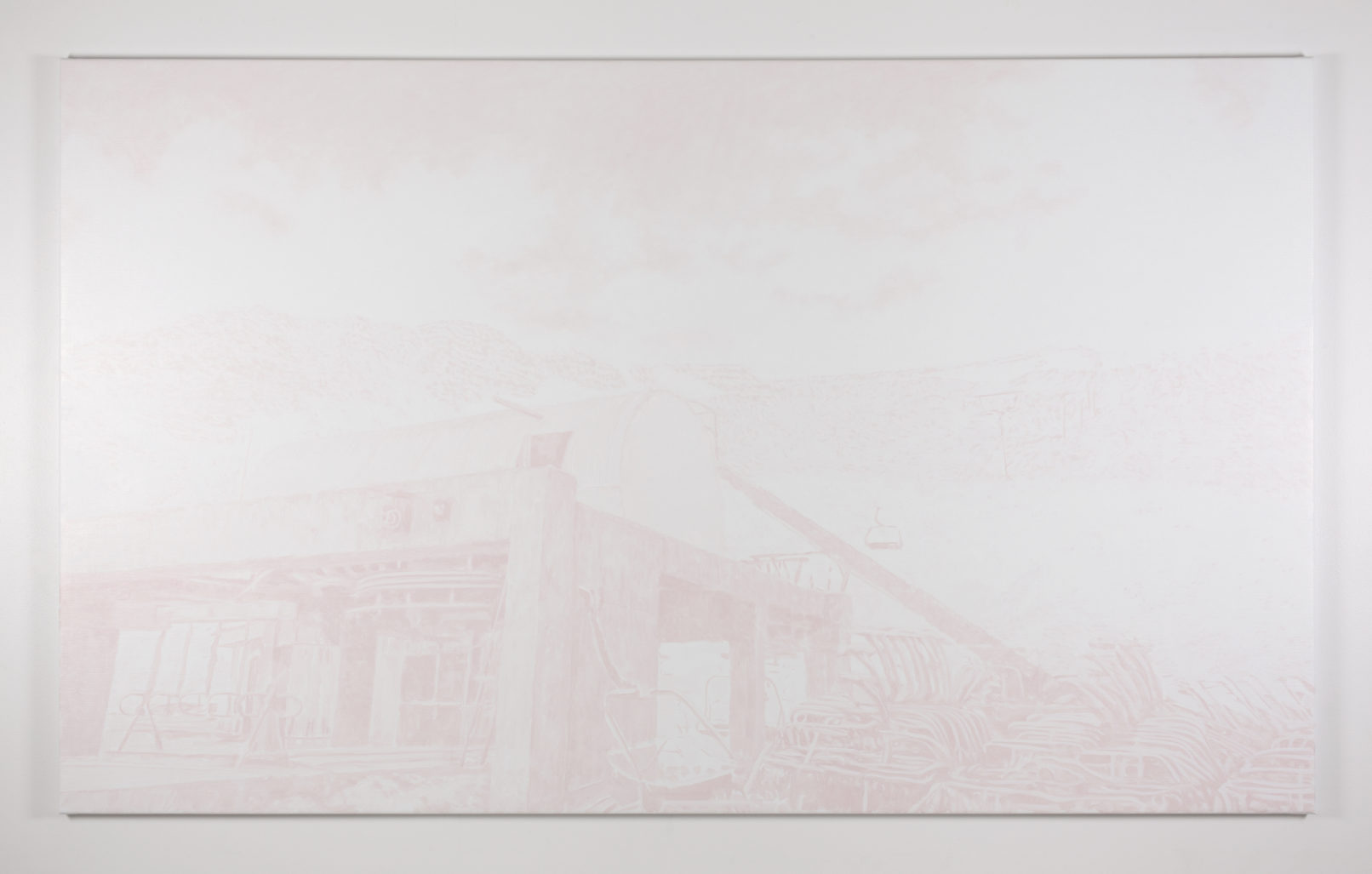 Samherji the fishing company, (see also Pride), has been generous when it comes to matters that earn them trust and good will. They sponsored that ski lift, (at least partially) I heard, situated on the mountain above Akureyri, earning lots of the credit. The lift was supposed to be up and running in 2018 but is still not functioning. It’s almost sarcastic that it’s not working, like a curse. What was meant to be the pride ski lift at the skiing resort on the mountain above Akureyri, is an on-going problem. Who knows perhaps it’ll be up and running when the work will be shown. The painting is big 120 cm x 200 cm. It looks apocalyptic, almost Chernobyl like. One of the strangest paintings I’ve done. After having painted a ski lift it surely feels like there isn’t a subject matter that can surprise you anymore.