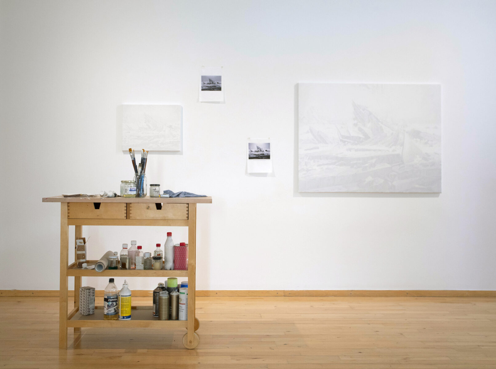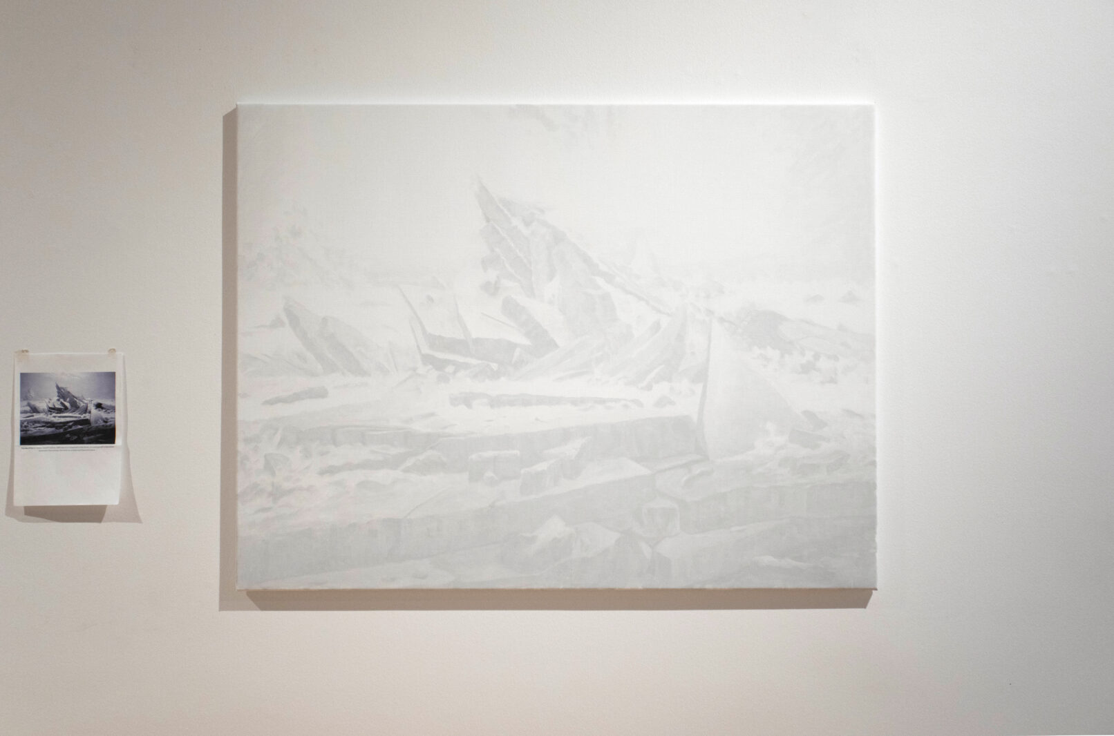 Repainting Caspar David Friedrich’s, Das Eismeer, (1823–1824). One of my all-time favourite paintings, not the least for its memorable, sublime and dramatic composition. So many of the war press photographs we see these days from bombed sites in Gaza have the exact same composition, (chosen by skilled eyes of its photographers), let alone its horrendous content. The rubble in the press pics is not far from being identical with the sea ice rubble in Friedrich’s painting, though one is fictional, the other not.